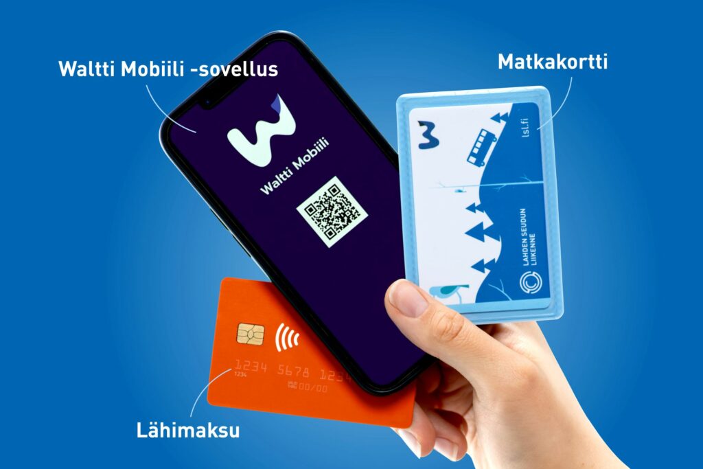 Lahden seudun liikenteessä matkalipun voi ostaa muun muassa matkakortilla, Waltti Mobiili -sovelluksella ja lähimaksulla.
