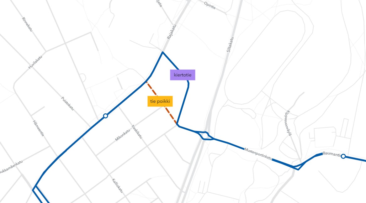 Työmaa alkaa 15.11.2021 aamulla ja kestää muutaman päivän. Normaalireitille palataan, kun tie saadaan auki.